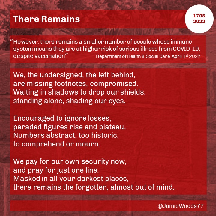 Jamie Woods is a writer from Swansea. He has had poetry published in Poetry Wales, short fiction in Evergreen Review and The Lonely Crowd, and his poem ‘Ring the Bell’ was commended in the Hippocrates International Prize for Poetry and Medicine 2021. In 2019 he was diagnosed with Acute Promyelocytic Leukaemia, and since reaching remission has been involved in supporting and advocating for fellow blood cancer patients.